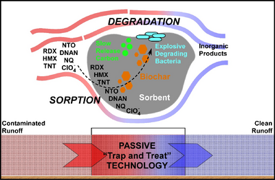 Novel sorbents and slow-release carbon sources can be an effective way to promote the sorption and biodegradation of a range of legacy and insensitive munition constituents from surface runoff, and the added benefits of biochar for both sorption and biotic and abiotic degradation of these compounds was demonstrated. These results establish a foundation for a passive, sustainable surface runoff treatment technology for both active and inactive military ranges.