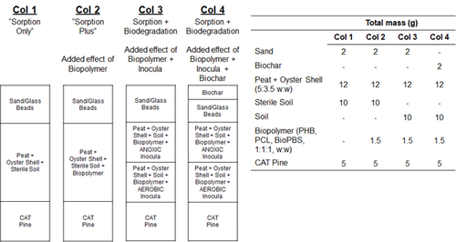 Based on the properties of the target munition constituents, a combination of materials was expected to yield the best results to facilitate the sorption and subsequent biotic and abiotic degradation of the contaminants.