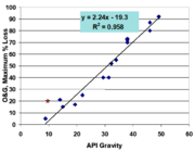 | 13:42, 9 November 2018 | Kamath1w2 Fig5.png (file) | 15 KB | Debra Tabron | Figure 5. Correlation between API gravity (specific weight of the crude) and the predicted extent of biodegradation as measured by oil and grease (O&G) (McMillen et al., 2004[5]) | 1 | |