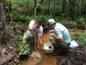 | + | [[File:Griffiths1w2a Fig3.png|thumb|right|Figure 3. Collection of Macroinvertebrates in One of the Study Streams]] | ||