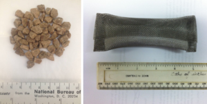 [[File:Lotufo1w2Fig8.png|thumb|right|Figure 8. 15g of composition B (left) placed in mesh bag (right) as used in the controlled field demonstration.]]