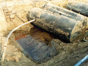 [[File:Yuncu1w2Fig5.png|thumb|Figure 5. Free Product Collecting in the Basin of an Underground Storage Tank ]]