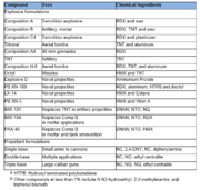 | 15:14, 4 January 2017 | KFinneran-Article 1-Table 1.PNG (file) | 40 KB | Debra Tabron | Table 1. Common US military explosives, propellants and IM formulations | 1 | |