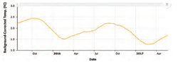 Figure 8b. Thermal NSZD Dashboard Graph from an LNAPL Location Indicating Fluctuating Heat Signal from Biodegradation over Time at 10 ft bgs (Horst et al. 2017).