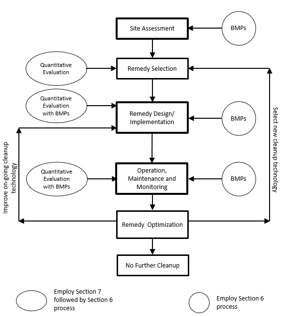 Figure 2. Life-cycle phases of remediation projects and where footprint assessments and LCAs can be implemented (ASTM, 2016). Reprinted, with permission, from E2893-16, Standard Guide for Greener Cleanups, copyright ASTM International, 100 Barr Harbor Drive, West Conshohocken, PA 19428. A copy of the complete standard may be obtained from ASTM