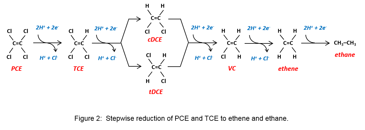 current10:10, 19 January 2017Thumbnail for version as of 10:10, 19 January 20171,219 × 437 (27 KB)Debra Tabron (talk | contribs)Figure 2. Stepwise reduction of PCE and TCE to ethene and ethane