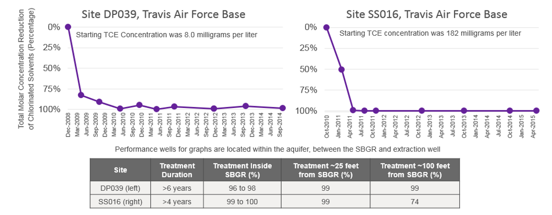Figure 2. SBGR performance observations for two chlorinated solvent sites in California
