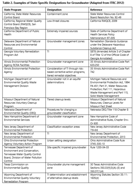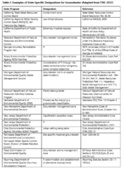 Hawley1w2. Table 2. Examples of State-Specific Designations for Groundwater (Adapted from ITRC 2012)