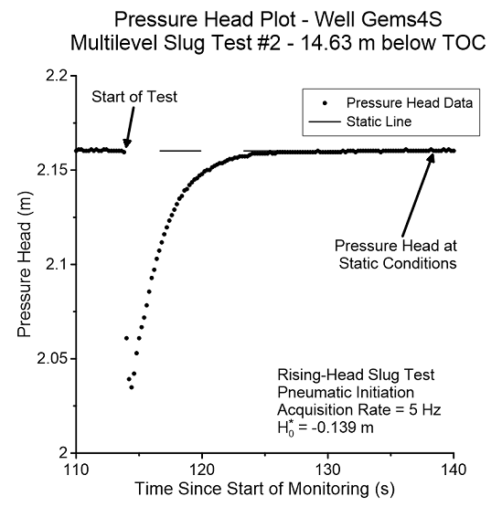 current13:18, 5 March 2019Thumbnail for version as of 13:18, 5 March 2019549 × 555 (58 KB)Debra Tabron (talk | contribs)Figure 2B. Example data plot from a multilevel slug test at GEMS. Test is initiated by sudden depressurization of a pressurized air column