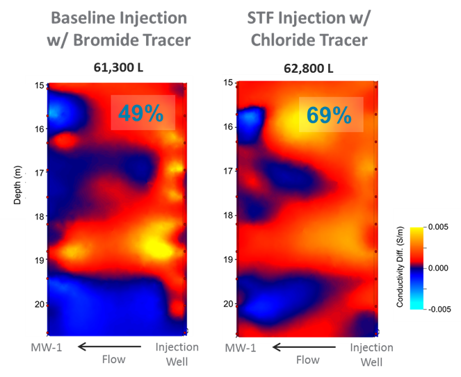 Figure 2. Comparison of amendment distribution using electrical resistivity tomography (ERT) images.