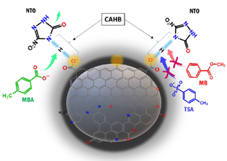 Results from this project suggest that NTO was chemically stable for up to at least a week in NaOH solution at pH 13.8[4]. Despite its highly polar and anionic character (pKa = 3.78), NTO exhibited unexpectedly strong sorption toward PCM at environmentally relevant pH conditions. This high affinity was partly due to the formation of an exceptionally strong negative charge-assisted hydrogen bond, or (−)CAHB, with weak acid functional groups on the carbon surface. The CAHB was identified by evaluating adsorption isotherms, pH adsorption edge plots, competitive sorption experiments, and pH drift experiments. The findings contradict the conventional view that polar organic anions have little affinity for or are even repelled by hydrophobic carbonaceous sorbents. The results call attention to the need for new models or modification of existing models for the sorption of ionizable compounds that consider CAHB formation with sorbents. The findings also have potential implications for the use of carbons in environmental remediation and catalysis, particularly for the design of strategies for the retention and degradation of highly mobile contaminants.